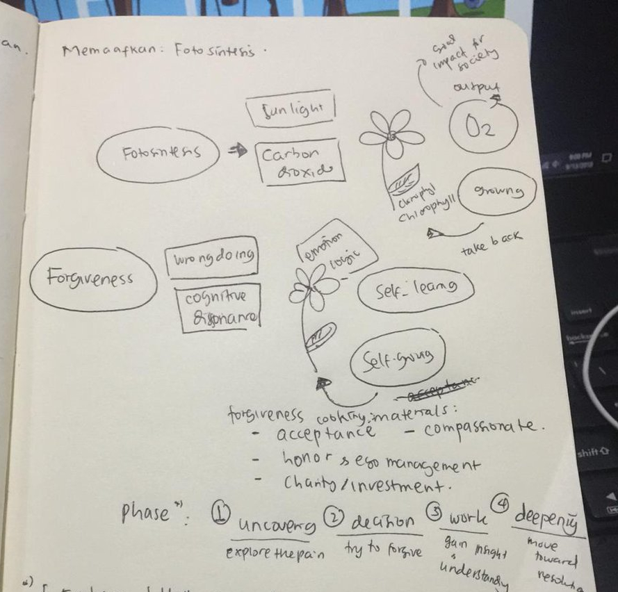Figuring out that forgiveness and photosynthesis somehow have similarities; flow, output and everything in between. Maybe it sounds non sense (ha) but that pseudo concept helped me so much to understand why we need to forgive.