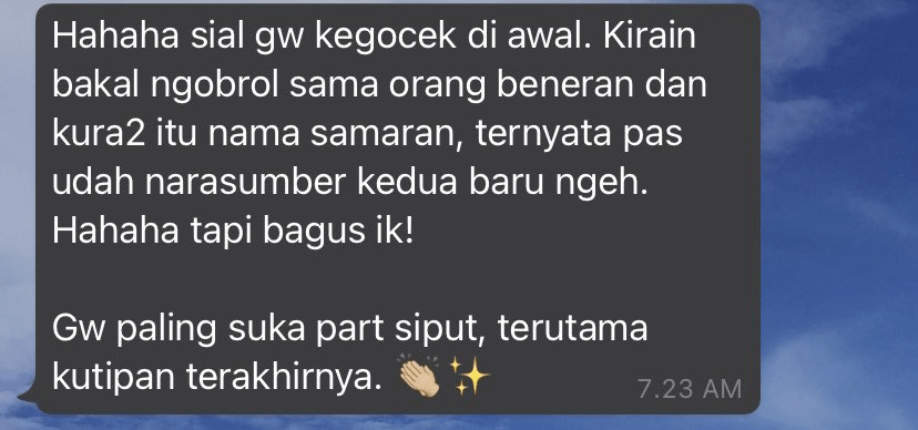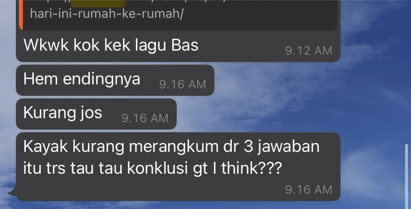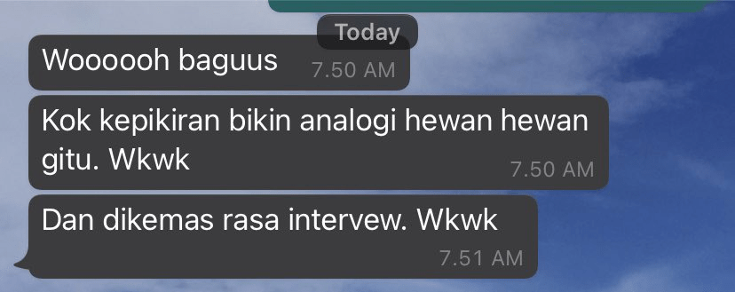 Berbeda dengan Kura-Kura yang begitu lekat dengan rumahnya, Lebah justru memiliki pendapat lain. “Gue nggak pinter ngomong, pinternya kerja, jadi simple aja ya.” Lebah terkekeh.